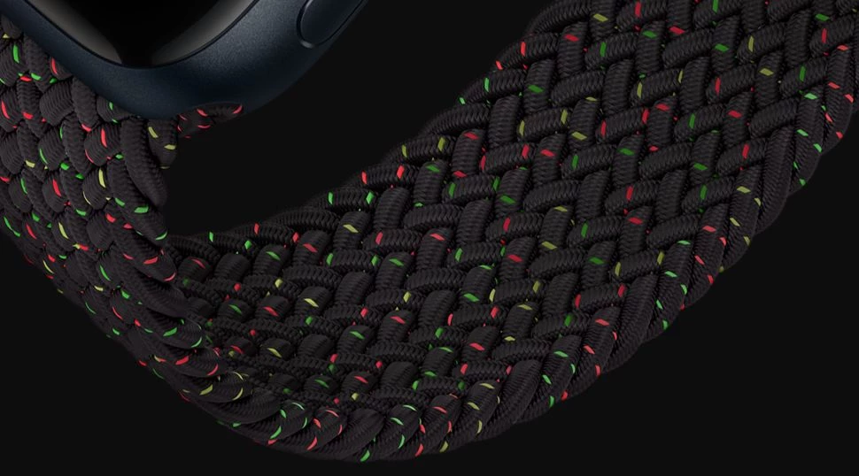 Оригинальный ремешок изготовлен из прочного полиеэстерового волокна с вплетением силиконовых нитей. Благодаря материалу, монобраслет очень эластичен, мягок и с легкостью одевается на запястье. Apple Braided Solo Loop выполнен в виде ремешка с плетеной текстурой.